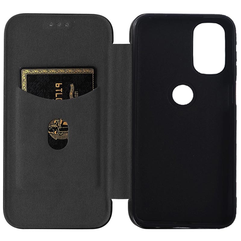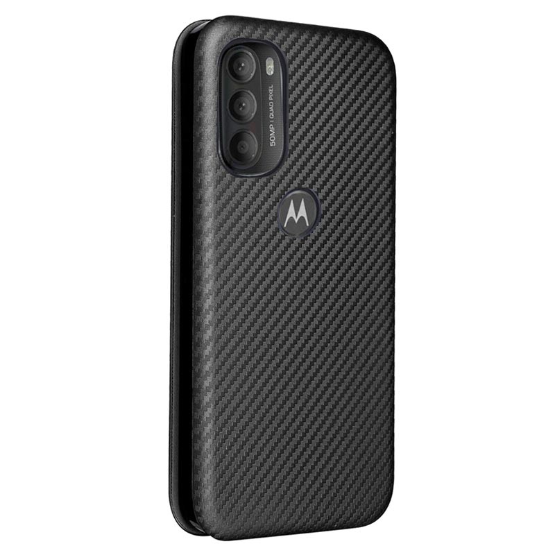 Schützen Sie Ihr Motorola Moto G71 5G mit dieser Flip Schutzhülle mit Carbon-Struktur.
