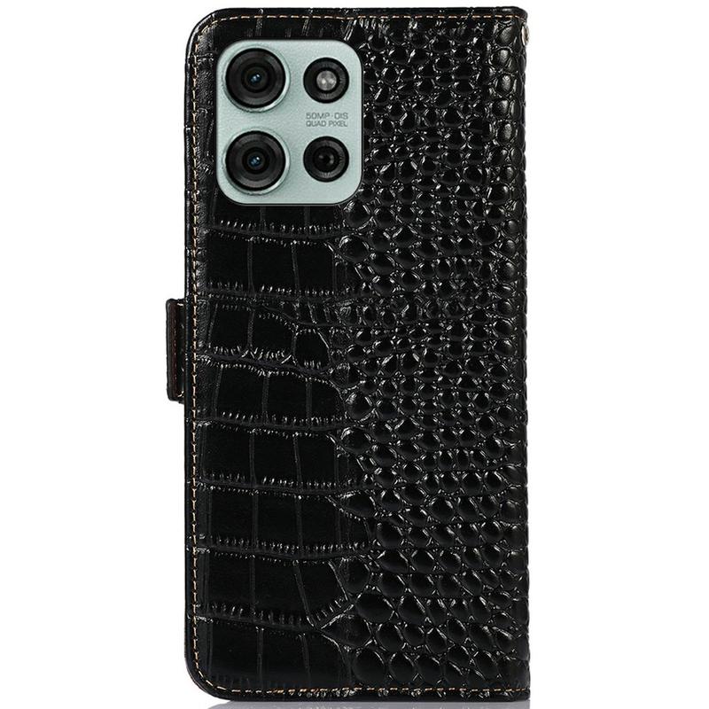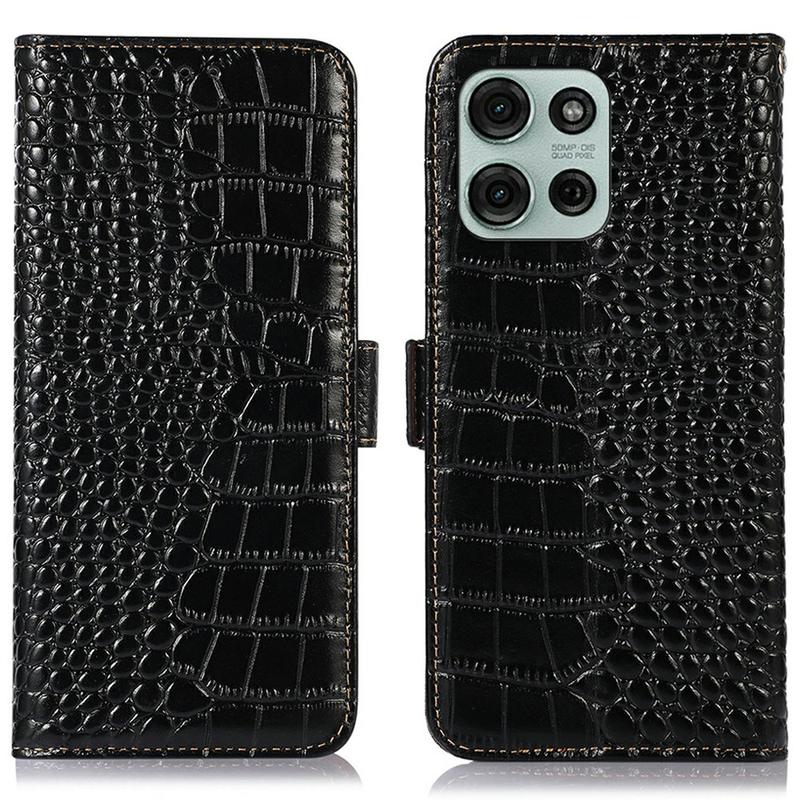 Crocodile Serie Lederhülle mit Geldbörse mit RFID für Motorola Moto G75