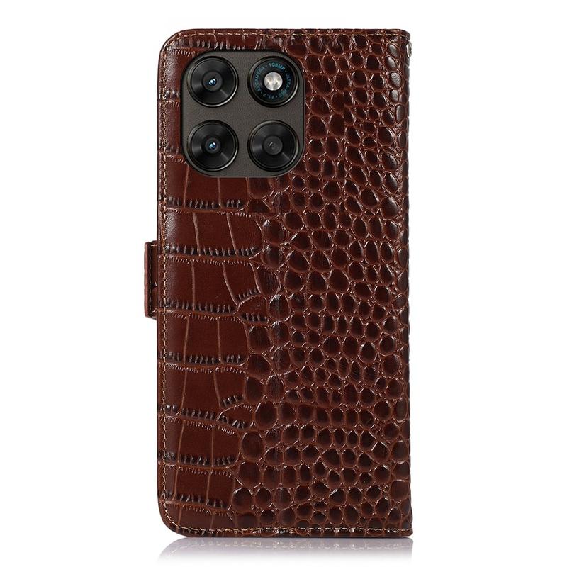 Motorola Moto G77/G67 Crocodile Serie Lederhülle mit Geldbörse mit RFID - Braun