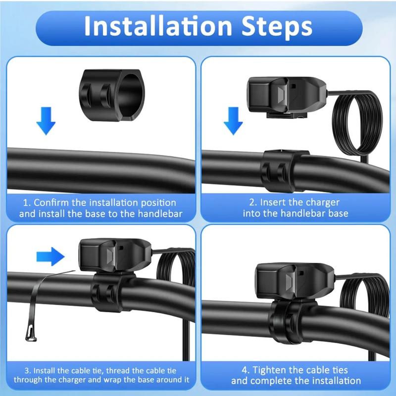 • Motorrad-Lenker-USB-Ladegerät 18W - IP66 wasserdichter SAE-zu-USB-Schnellladeadapter (5 V / 3 A, 9 V / 2 A, 12 V / 1,5 A)