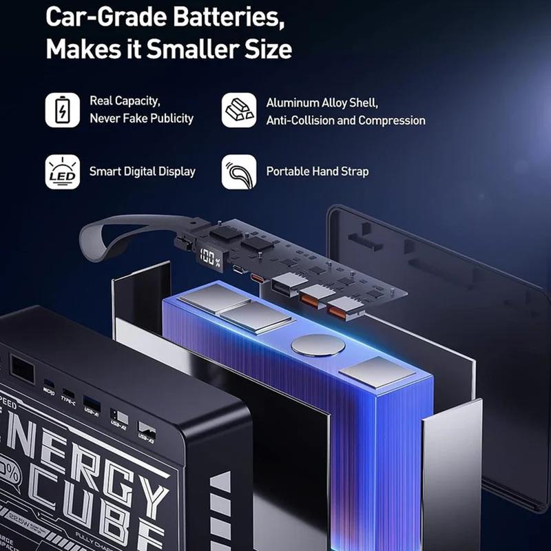 - Mecha Cube Design - Inspiriert von der futuristischen Ästhetik eines Energiewürfels, besticht diese Powerbank durch ihr kühnes und robustes Aussehen, ohne dabei an praktischer Tragbarkeit einzubüßen.