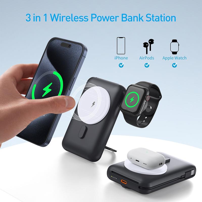 Sein 3-in-1-Design macht es besonders nützlich für Apple-Nutzer, da Sie Ihr iPhone, Ihre AirPods und Ihre Apple Watch über ein einziges Gerät aufladen können. Der integrierte Ständer sorgt für noch mehr Alltagstauglichkeit und erleichtert es, während des Ladevorgangs Videos anzusehen, Benachrichtigungen zu überprüfen oder an Videoanrufen teilzunehmen. Mit 20-W-Schnellladung per Kabel, Unterstützung für magnetisches kabelloses Laden und einem durchdachten Wärmeableitungsdesign vereint das MP07 Leistung, Mobilität und Alltagskomfort in einem eleganten, tragbaren Ladegerät.