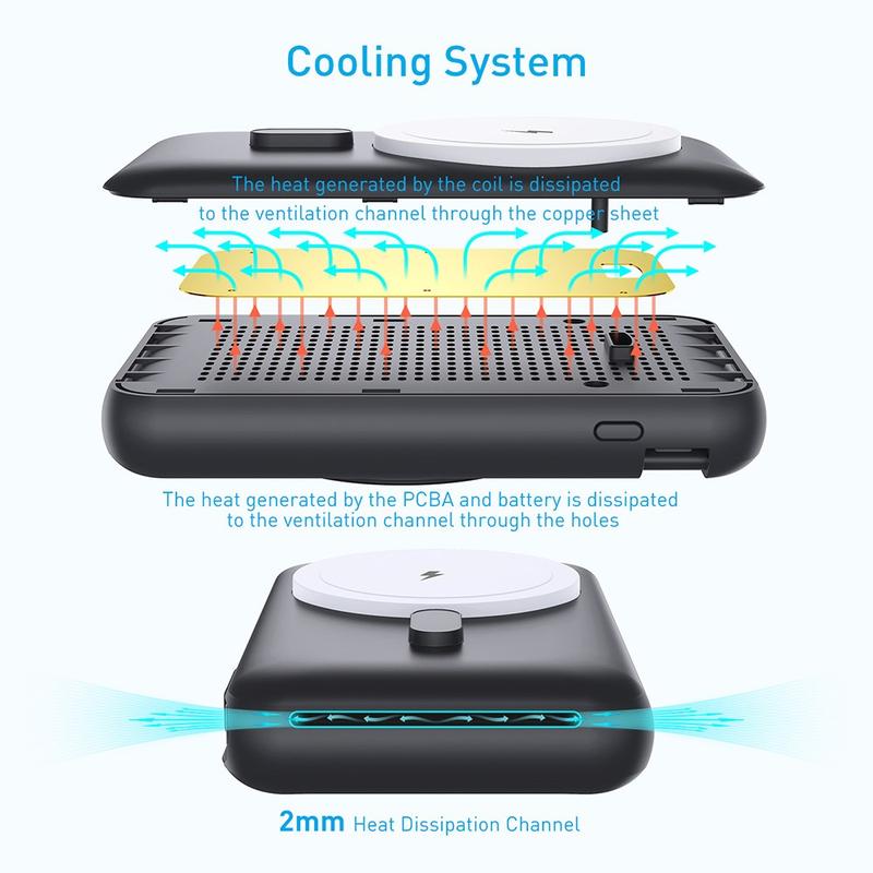 - 2 mm breite Wärmeableitkanäle und Lüftungsöffnungen sorgen für eine stabilere Ladeleistung