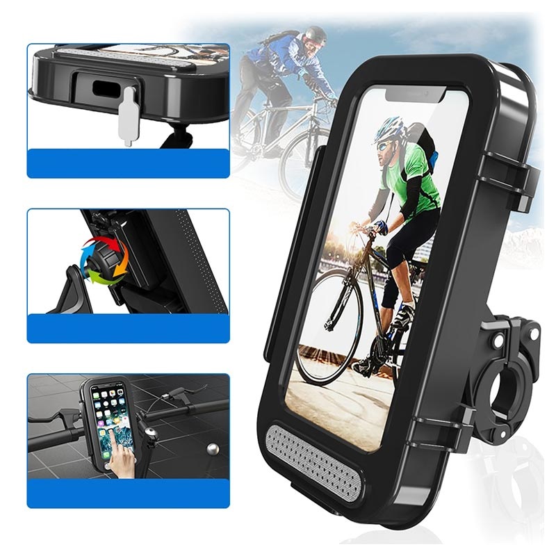 Diese leistungsstarke Fahrradtasche verfügt über eine transparente Vorderseite, die Ihr Smartphone während des Radfahrens zugänglich hält. Die MTB Fahrradhalterung / Fahrradtasche bietet 360-Grad-Schutz für das Telefon - starten Sie die Eroberung des Berges.