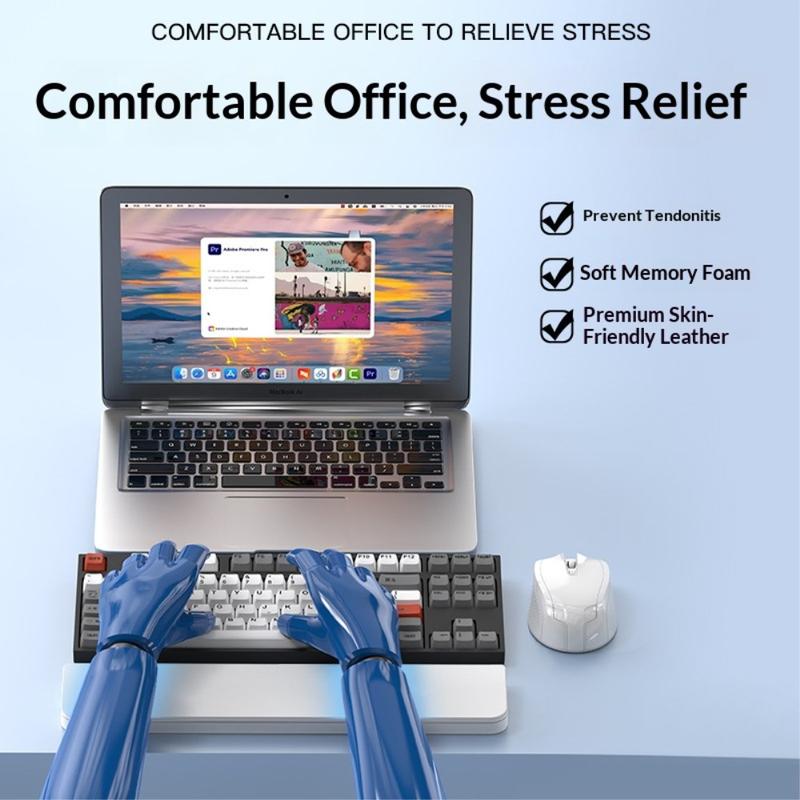 Die Handgelenkstütze ist aus weichem Polyurethan und hochwertiger Schaumstoffpolsterung gefertigt und bietet eine sanfte und stabile Unterstützung für das Handgelenk. Das ergonomische Design hilft, Druck und Ermüdung bei längerem Tippen, Büroarbeit oder Lernen zu reduzieren.