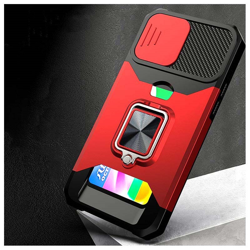 Multifunktionale 4-in-1 Hybrid Hülle für iPhone 11 Pro mit Kartenhalter, Magnetring, Kickstand, Kameraschutz