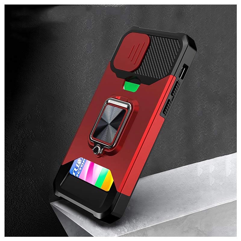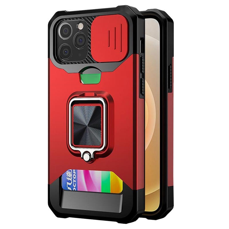 • Multifunktions 4-in-1 Hybrid Hülle für iPhone 12, iPhone 12 Pro mit Kartensteckplatz, Magnetische Ring, Ständer, Kamera Schutz