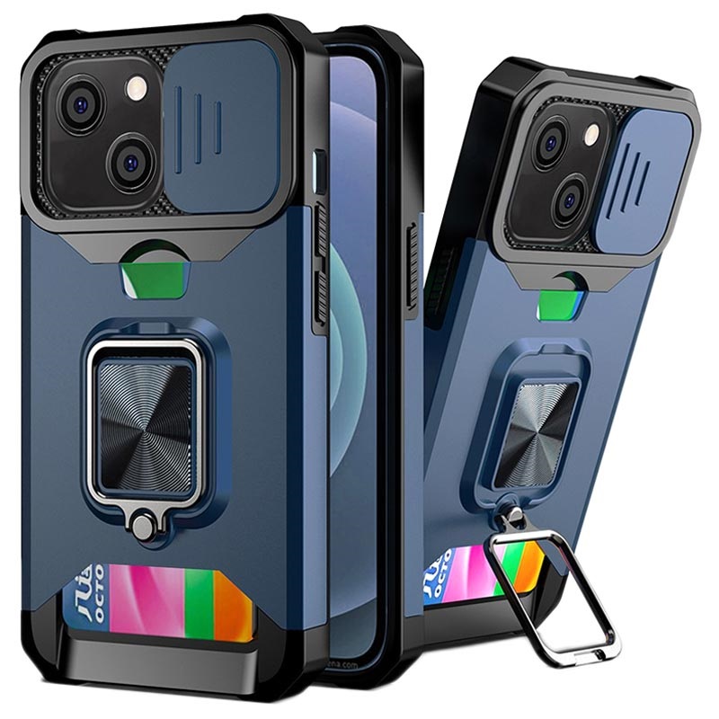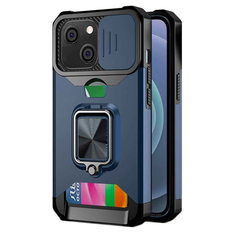 Multifunktionale 4-in-1 Hybrid-Hülle für iPhone 13 mit Kartenhalter, Magnetring, Ständer und Kameraschutz