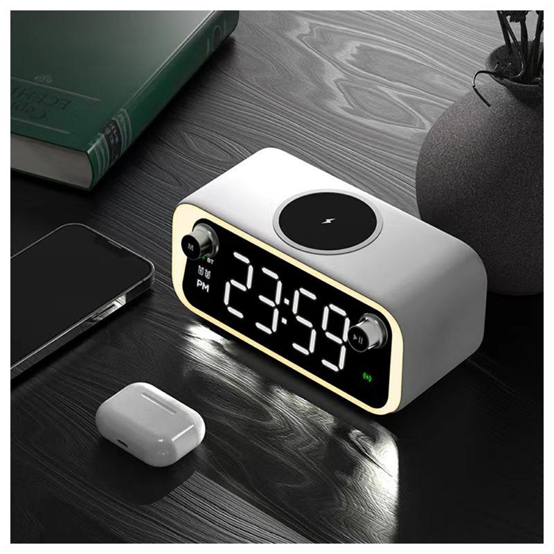 - Multifunktionsgerät: Bluetooth-Lautsprecher, kabelloses Ladegerät, Wecker und Nachtlicht
