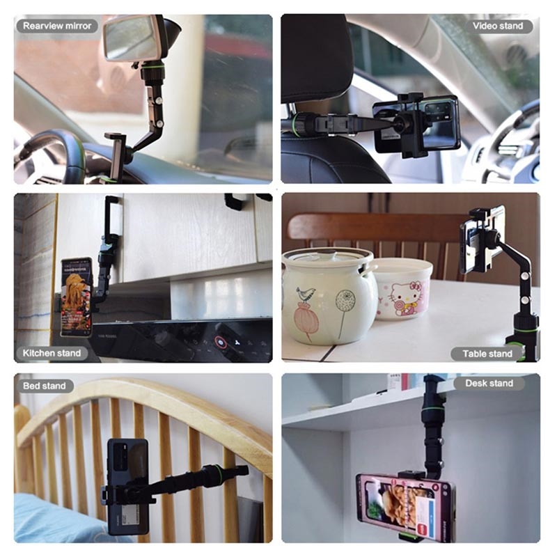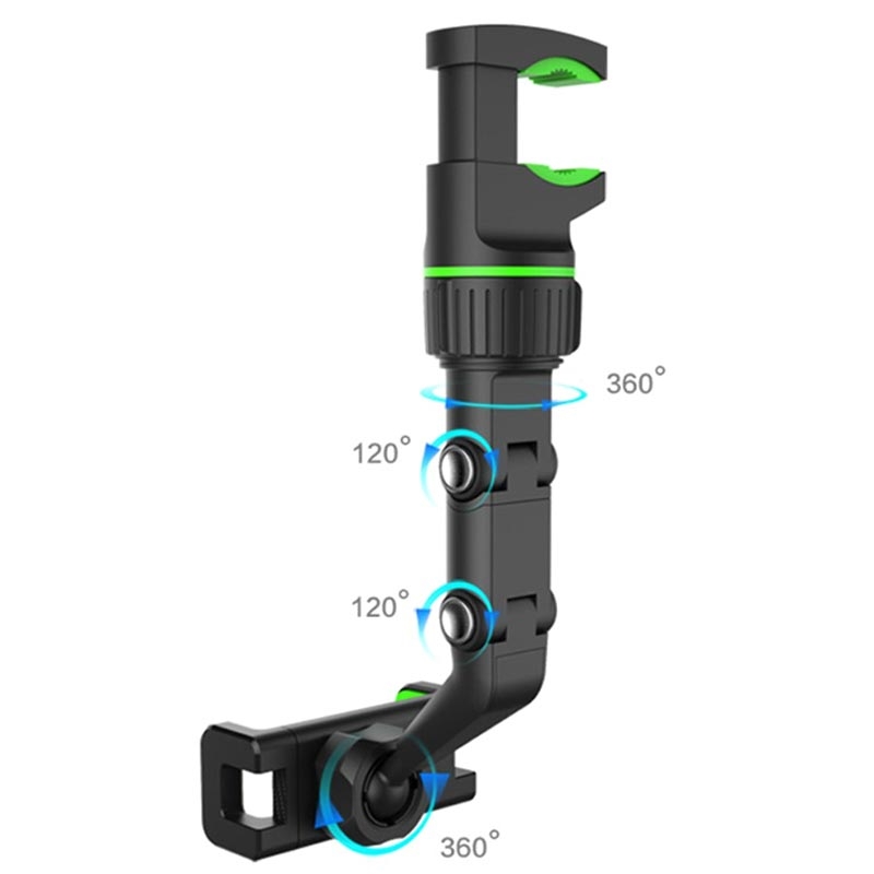 Der Autohalter ist mit den meisten Standard-Rückspiegeln kompatibel und somit dank des 21 mm verstellbaren Clips vielseitig und an verschiedene Fahrzeugmodelle anpassbar. Sie können diesen Telefonhalter auch als Küchenständer, Tischständer und Kopfstützenhalter verwenden. Entwickelt mit einer 360-Grad-Drehung und einer 120-Grad-Drehung an zwei Punkten, sodass Sie den Betrachtungswinkel ganz einfach an Ihre Vorlieben anpassen können.