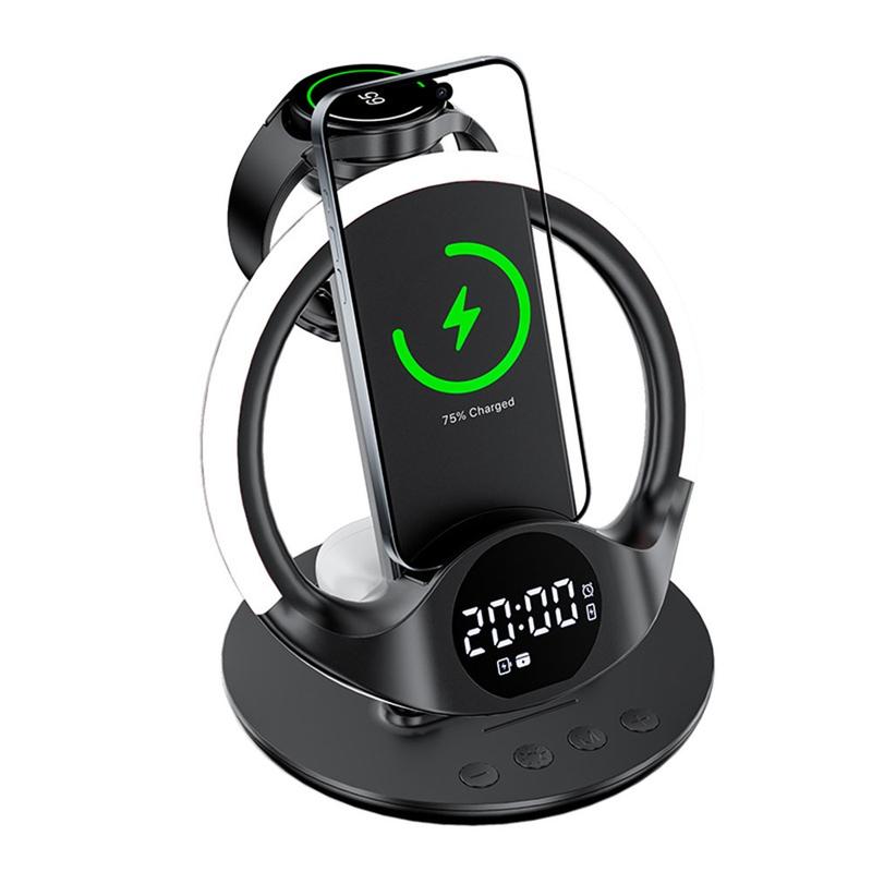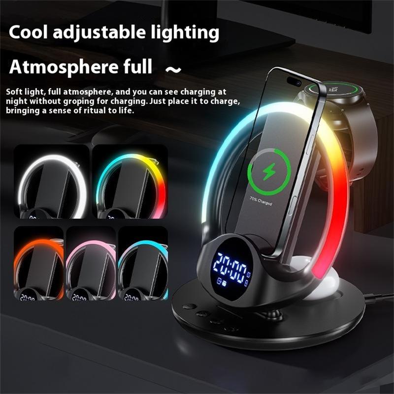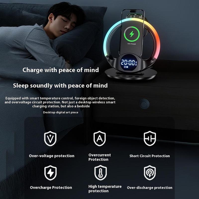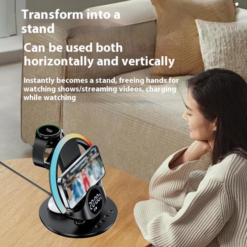 N01 6-in-1 kabellose Ladestation / magnetische Schnellladestation mit Wecker, intelligenter Temperaturregelung und Nachtlicht