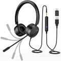 NEU BEE H360 Telefon Headset On Ear 3.5mm / USB Kabelgebundenes Mikrofon mit Rauschunterdrückung und Mikrofon für Computer PC Laptop Stereo