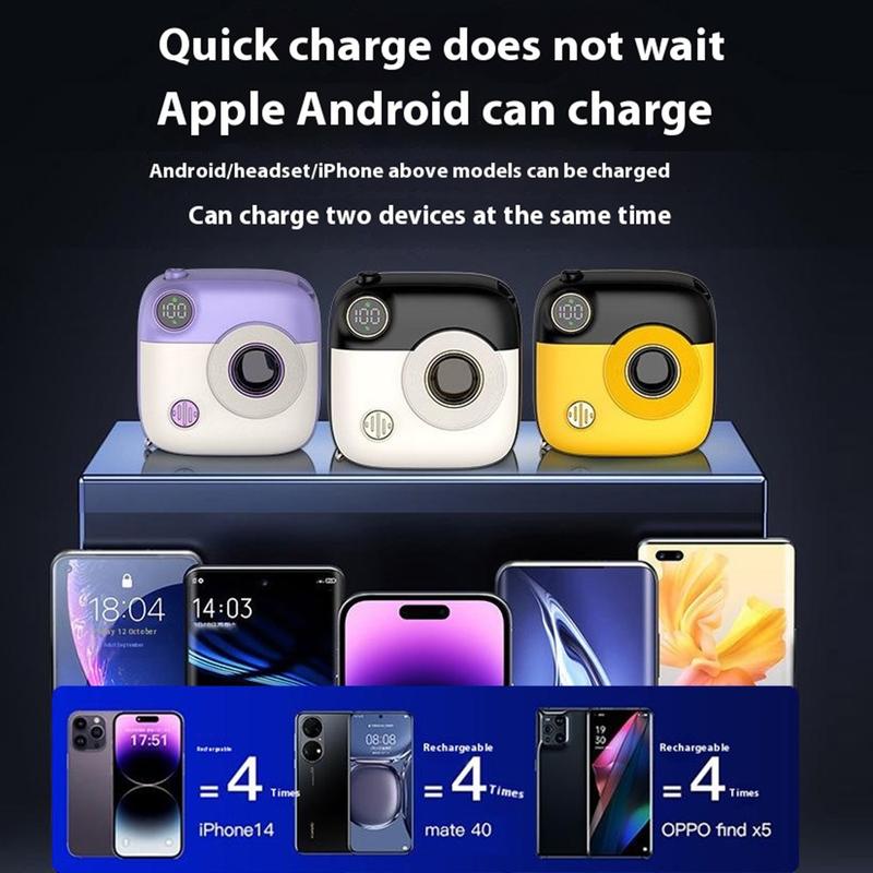 - Einzigartiges Design: Das kameraförmige Design hebt es von Standard-Powerbanks ab.