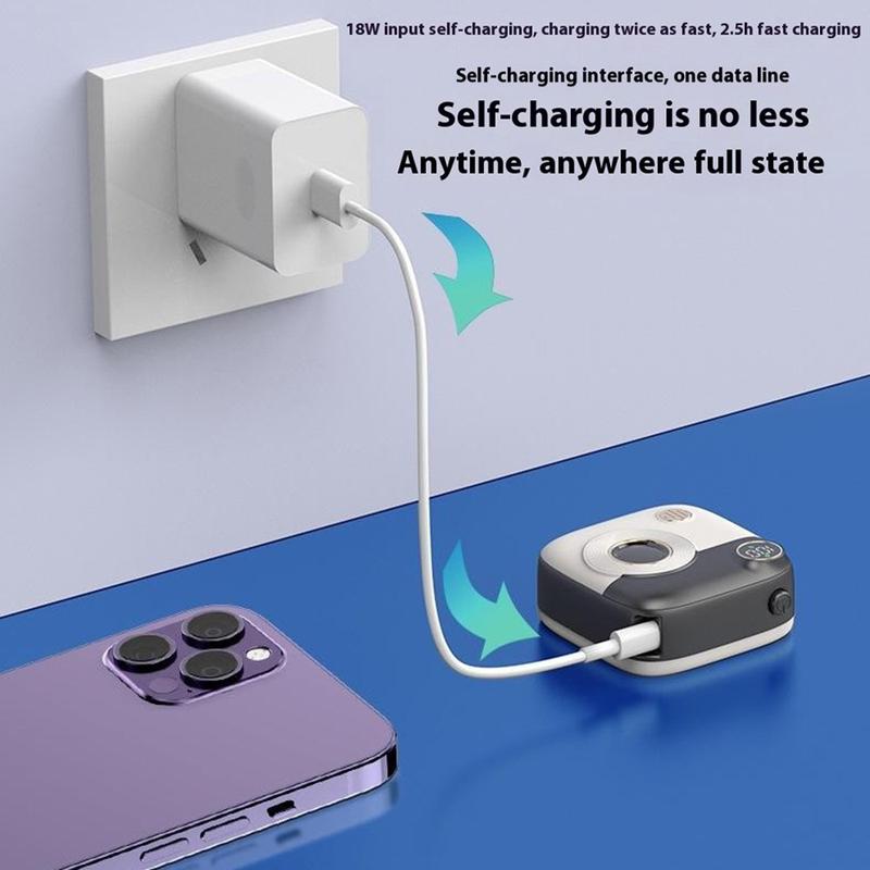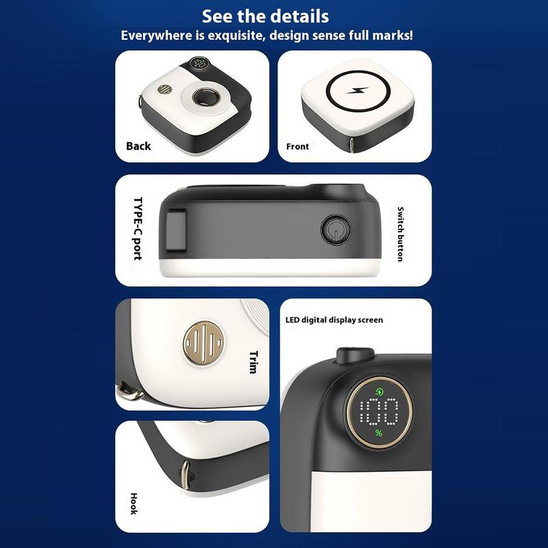 - Einzigartiges Design: Das kameraförmige Design hebt es von Standard-Powerbanks ab.