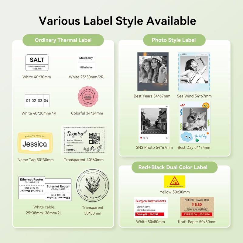 - Kreative Design-App - Mit der NIIMBOT-App haben Sie Zugriff auf mehr als 1500 Symbole, 249 kostenlose Schriftarten und mehr als 1000 Vorlagen sowie auf VIP-exklusive Elemente für eine vollständig individuelle Etikettengestaltung.