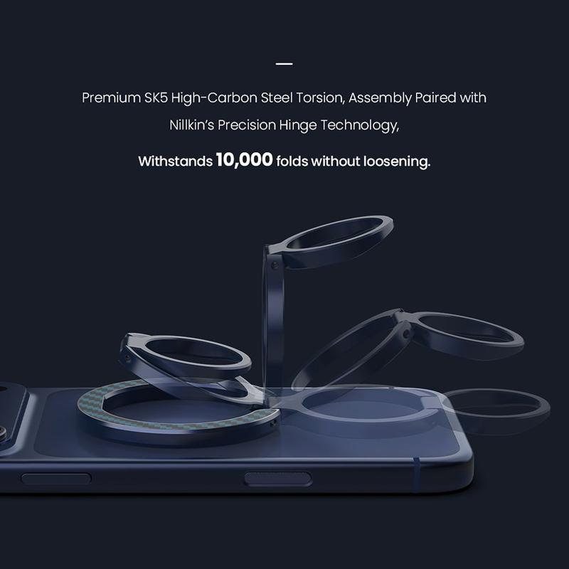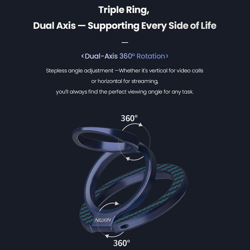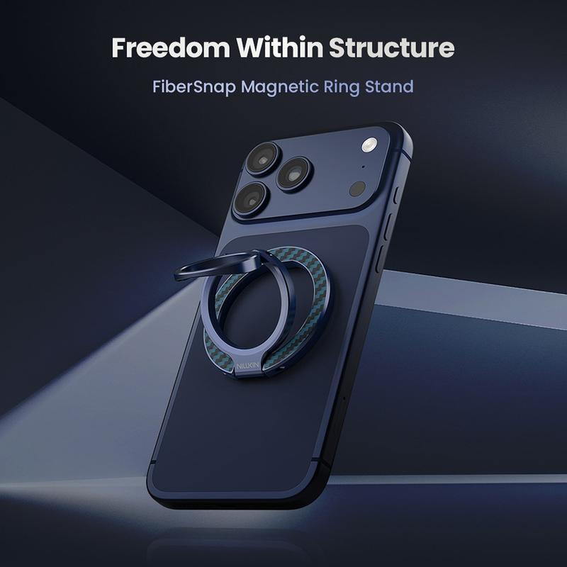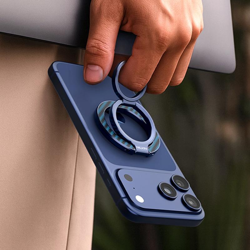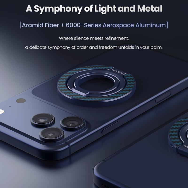 Der FiberSnap Magnetic Ring Stand von Nillkin verbindet hochwertige Materialien mit flexibler Funktionalität, um die tägliche Nutzung des Telefons zu verbessern. Gefertigt aus leichten Aramidfasern und eloxiertem Aluminium, bietet er eine raffinierte technische Ästhetik und gleichzeitig einen sicheren Halt und müheloses freihändiges Betrachten. Er wurde für die nahtlose MagSafe-Nutzung entwickelt und passt sich problemlos an Arbeit, Reisen und Alltag an, ohne im Weg zu sein.