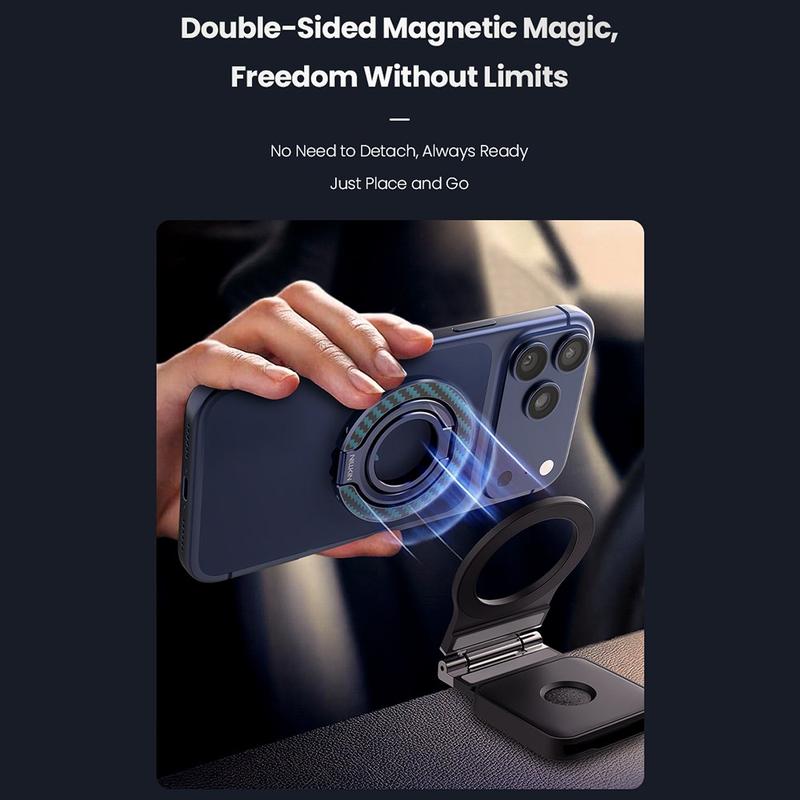 FiberSnap kombiniert elegantes Design mit praktischer Flexibilität. Sein zweiachsiger Ring bietet einen sicheren, natürlichen Halt, während die stufenlose Einstellung des Blickwinkels dafür sorgt, dass Sie immer die perfekte Position finden. Mit doppelseitigem Magnetismus und hochwertigen Materialien bietet er Komfort und Stil in einem kompakten Accessoire.