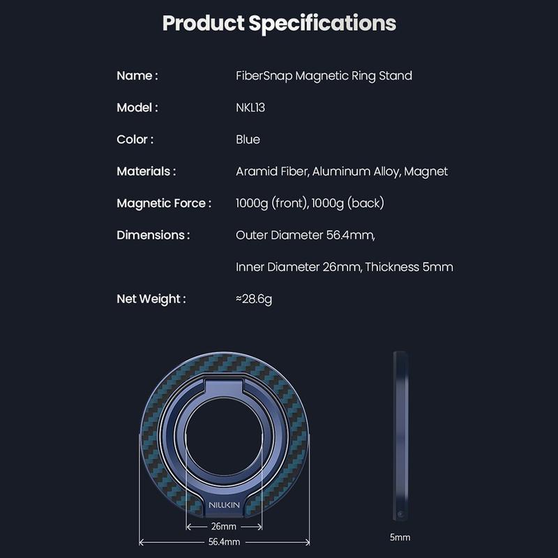 • Nillkin FiberSnap Magnetischer Ringständer - Aramidfaser und Aluminiumgriff mit stufenloser Winkeleinstellung