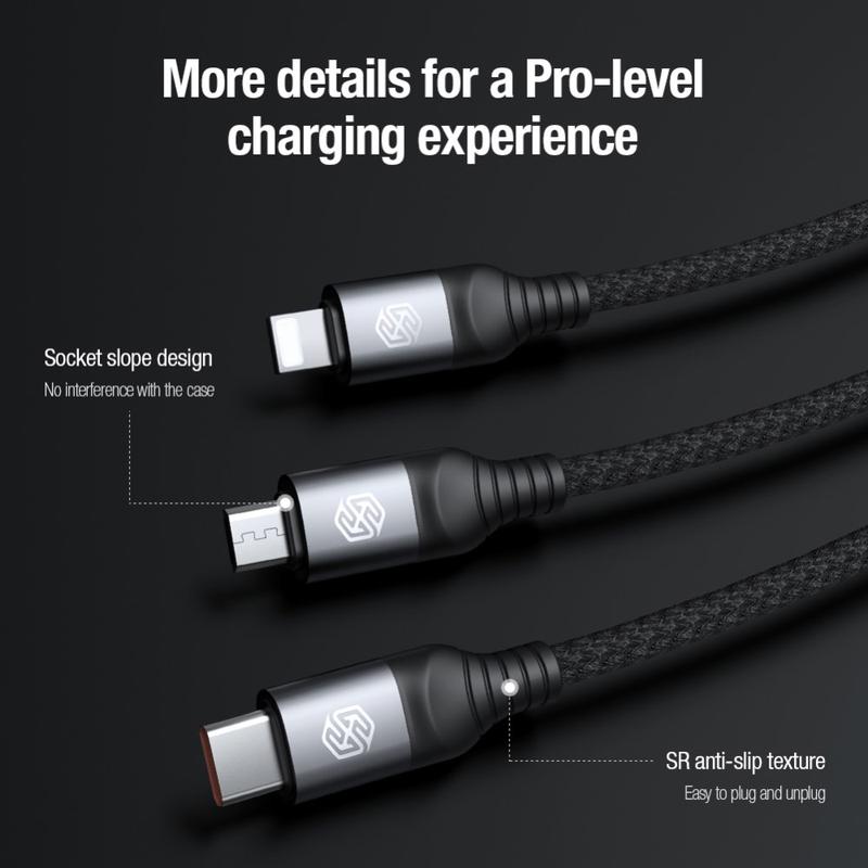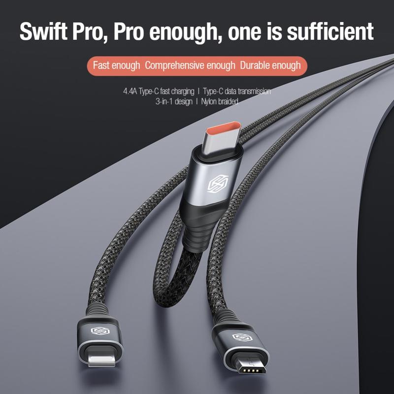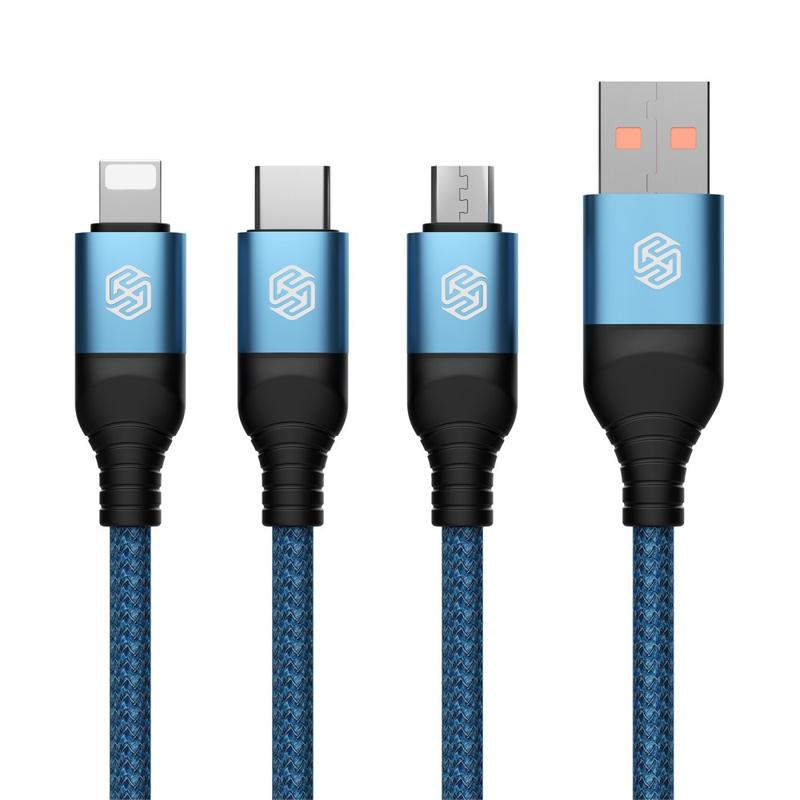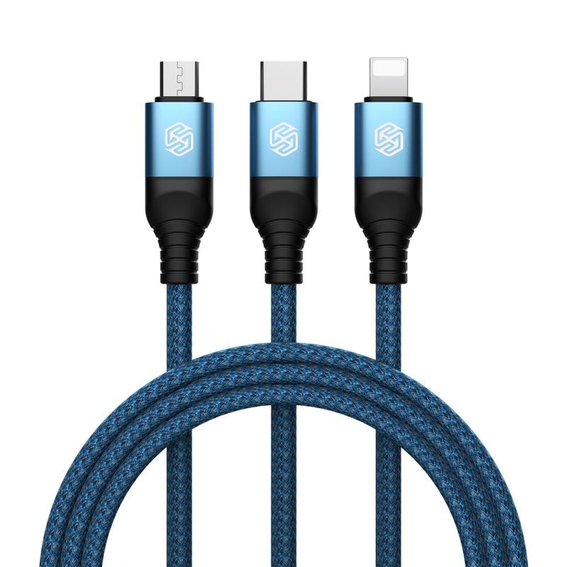 NILLKIN Swift Pro 3-in-1 Kabel Nylon geflochten USB zu Typ-C / iP / Micro Ladekabel - Blau