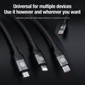 Verstärktes Nylon-Geflechtkabel: Das verstärkte, nylongeflochtene Kabel sorgt für zusätzliche Festigkeit und Langlebigkeit. Das 1-Meter-Hauptkabel und das 0,5-Meter-Splitkabel bieten flexible Ladeoptionen