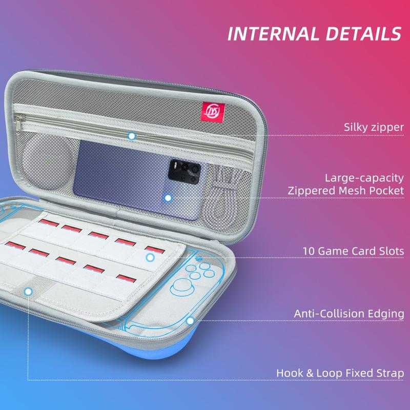 Weiche Taschen können Zubehörteile zerdrücken und mit dem Bildschirm vermischen. Das JYS-Design mit zwei Fächern behebt beide Probleme: Eine starre EVA-Außenseite widersteht Druck, während separate Abschnitte verhindern, dass Kabel oder Adapter an der Konsole reiben. Zehn Kartenfächer sorgen dafür, dass Sie Ihre Top-Titel mitnehmen können - es sind keine zusätzlichen Taschen erforderlich.