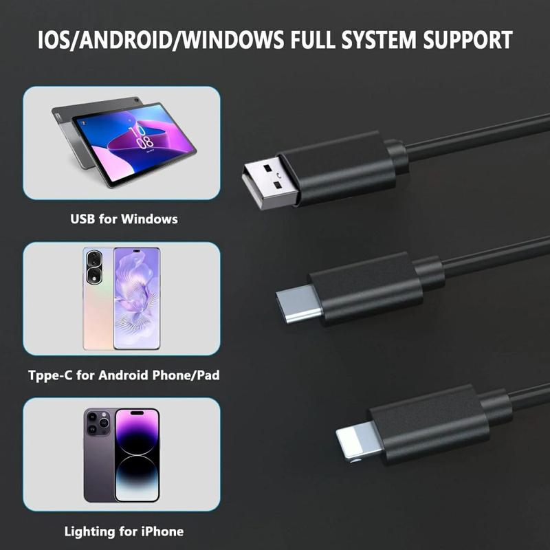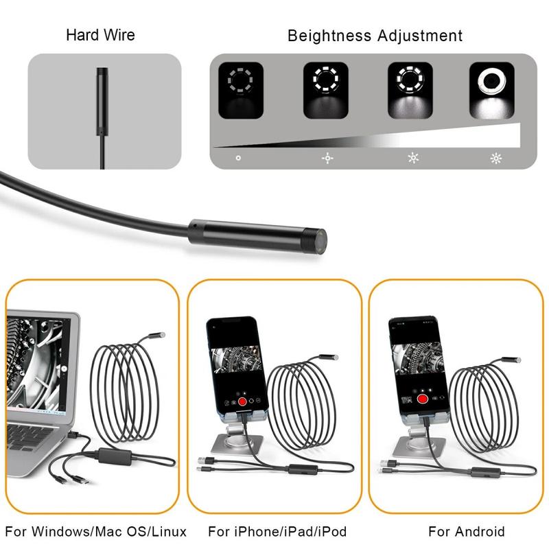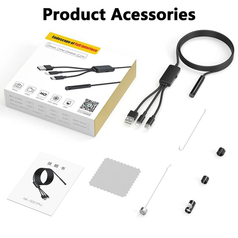 NK-5001Pro 3-in-1 wasserdichte IP67 Inspektionskamera / Endoskop für iPhone/Smartphone, iPad/Tablet - Lightning, USB-C, USB - 5m, 1080p/720p