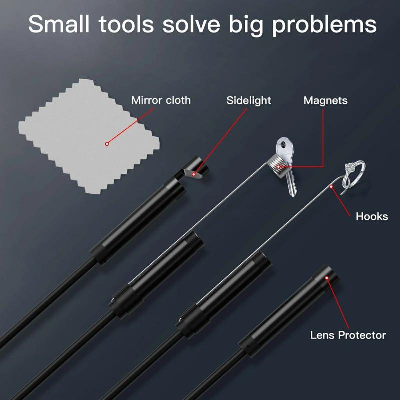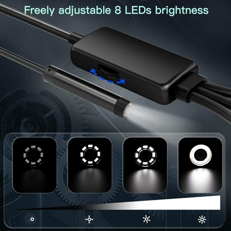 Das NK-5001Pro 3-in-1 wasserdichte IP67 Inspektionskamera/Endoskop ist ein vielseitiges industrielles Endoskop, das direkt an Ihr Mobilgerät angeschlossen werden kann. Mit einer hochauflösenden Kamera liefert dieses Endoskop klare Bilder und Videos für Inspektionszwecke. Die Kamera ist mit einer LED-Hilfslicht-HD-Kamera mit 8 mm Durchmesser ausgestattet und verfügt über einen hochempfindlichen Chip, der den Einsatz in dunklen Arbeitsumgebungen ermöglicht. Das Aluminiumrohr hat einen Durchmesser von 5.5mm und das Objektiv hat eine Brennweite von 4-10 cm und bietet einen weiten Betrachtungswinkel von 76 Grad. Das Endoskop ist wasserdicht (IP67) und somit für verschiedene Anwendungen geeignet.