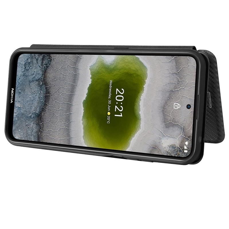 Bewahren Sie Ihr Nokia X10, X20 in diesem Flip-Case mit Kohlefaser-Textur auf Nummer sicher auf.