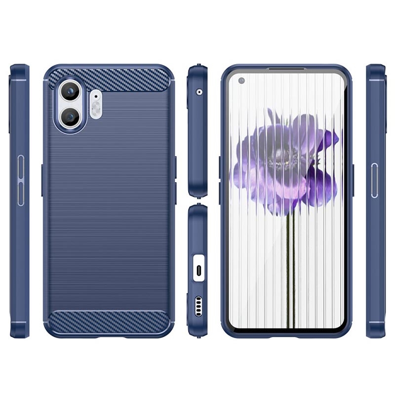 Schützen Sie Ihr Nothing Phone (2) vor unerwünschten Schäden und Stürze mit diesem coolen gebürsteten TPU-Cover ab. Diese flexible Hülle hat schicke Kohlefaser-Akzente, die zum stilvollen und modernen Look Ihres Nothing Phone (2) beitragen.