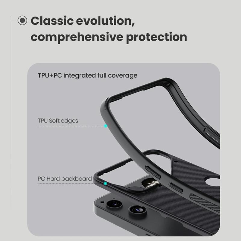 Nillkin hat die neue, leistungsstärkere Pro-Version der Super Frosted Shield Hülle für Ihr wertvolles Nothing Phone (3) entwickelt. Ultimativer Fallschutz, dank Dual-Layer-Design - PC-Rückseite mit TPU-Rahmen.