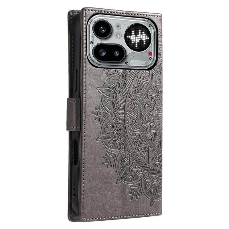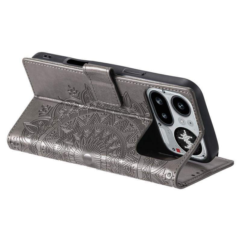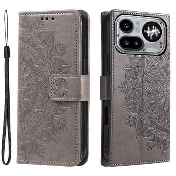 Nothing Phone (4a) Pro Mandala-Wallet Hülle mit Handschlaufe - Grau