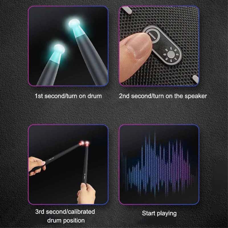 Jeder Drumstick verfügt über eine LED-Leuchte an der Spitze, die während des Spielens für einen dynamischen visuellen Effekt sorgt – ideal für Auftritte, Partys und motivierendes Üben.