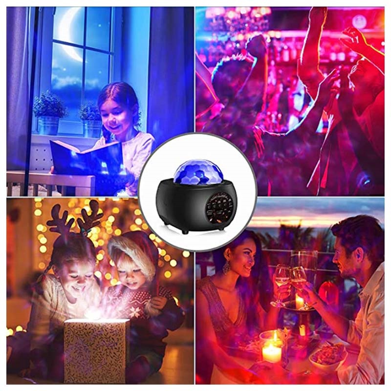 Das Ocean Wave Sternenlicht hat 4 verschiedene Farben von Wellen und 10 Himmelskörperfarben, um verschiedene Kombinationen zu bilden und eine romantische und aufregende Atmosphäre für Ihre Nacht zu schaffen. Sie können den Lichtmodus, die Musik, die Lautstärke oder die Helligkeit ganz einfach über die Fernbedienung ändern. Diese Lampe mit Bluetooth-Lautsprecher eignet sich für Geburtstage, Partys, Hochzeiten, Raumdekoration und Urlaub. Sie schafft eine schöne und klare sternförmige Atmosphäre für Sie oder Ihre Kinder. Viele Beleuchtungsmodi und Farben ermöglichen es Ihnen, diejenige auszuwählen, die Ihnen am besten gefällt, und diese Nachtlampe an Ihre Bedürfnisse anzupassen.