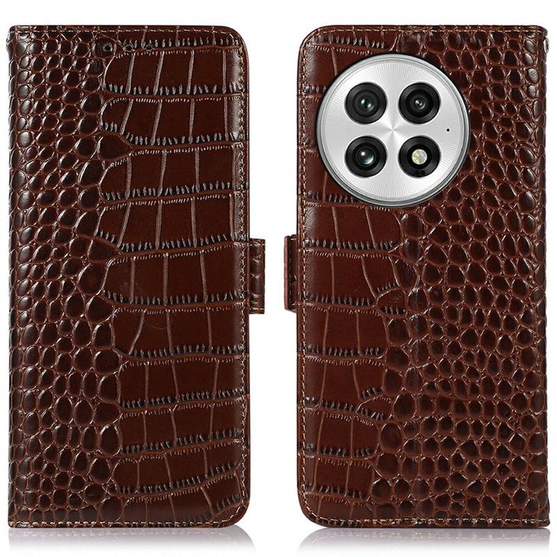OnePlus 13 Crocodile Serie Lederhülle mit Geldbörse mit RFID - Braun