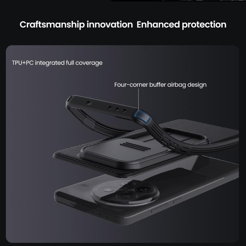 Genießen Sie zusätzliche Privatsphäre und Schutz mit der CamShield Pro-Hybridhülle von Nillkin. Durch die Kombination von starrem Kunststoff und TPU verhindert die Kameraabdeckung Kratzer und schützt gleichzeitig Ihr OnePlus 13 vor täglicher Abnutzung.