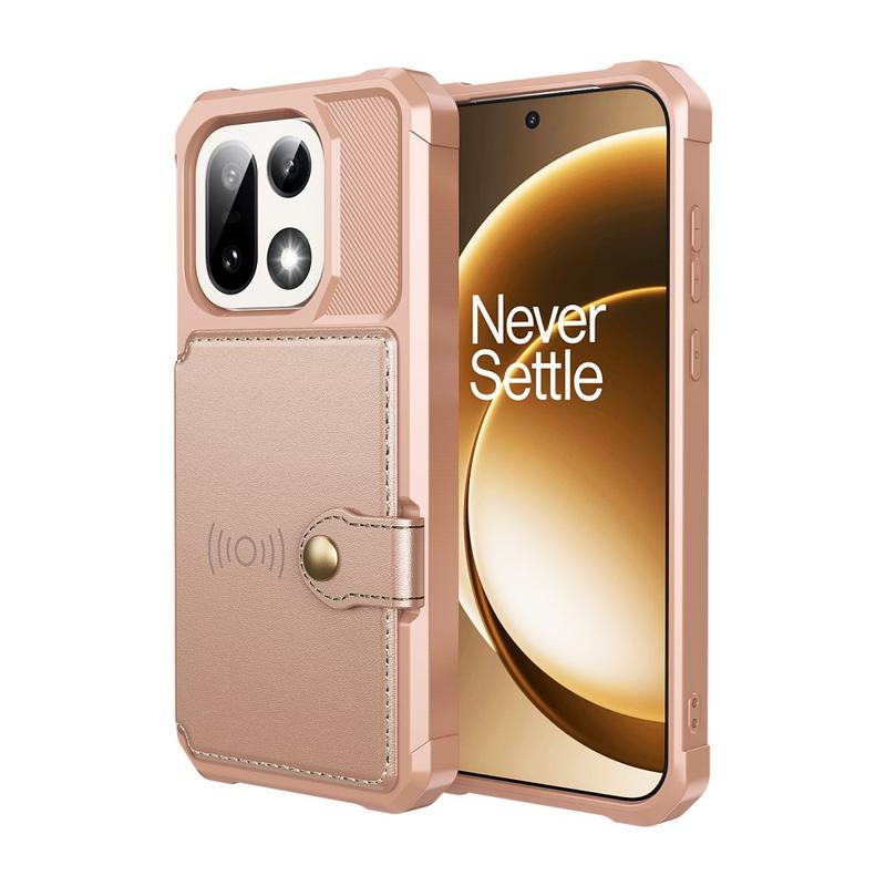 - Die Brieftaschenhülle für das OnePlus 15 verfügt über einen sicheren Druckknopfverschluss, ein Brieftaschendesign und mehrere Kartenfächer mit einer Geldtasche