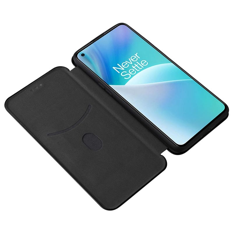 Schützen Sie Ihr OnePlus Nord 2T mit dieser Flip Schutzhülle mit Carbon-Struktur.