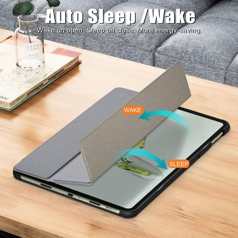 Egal, ob Sie ein Video ansehen oder mit einem Stift auf Ihrem OnePlus Pad Go, Oppo Pad Air2 zeichnen, diese Folio-Hülle hält es in einem idealen Winkel und sorgt für ein komfortableres und produktiveres Erlebnis. In der Zwischenzeit schaltet sich die intelligente Weck-/Schlaffunktion beim Öffnen der Frontklappe automatisch auf das Display ein.
