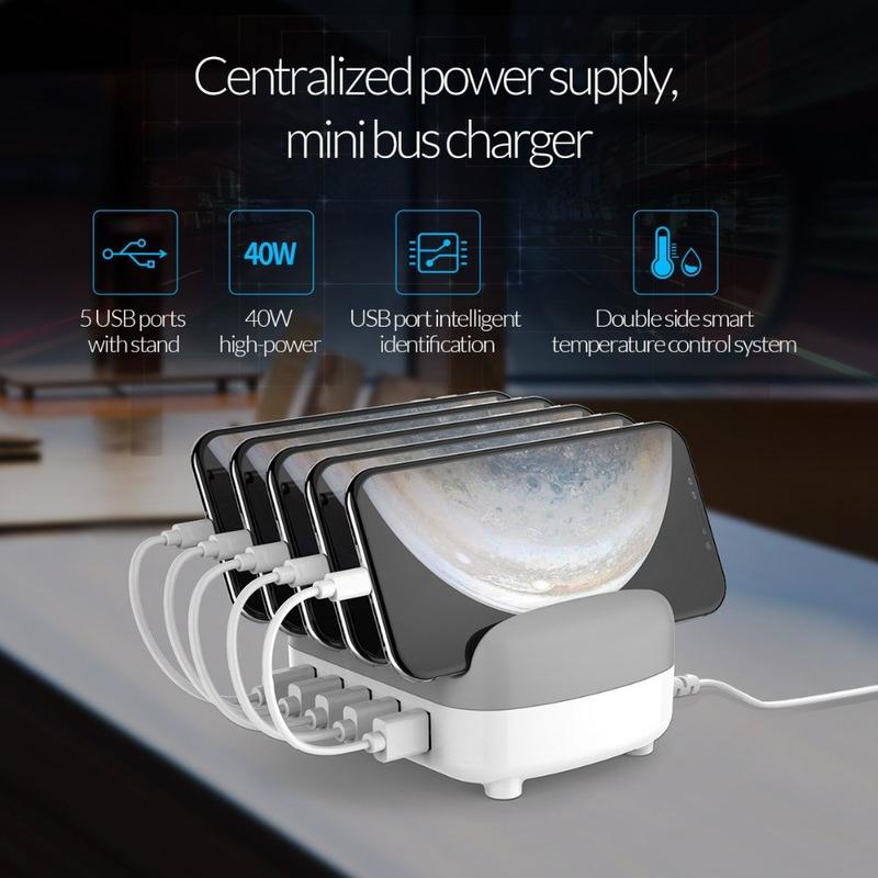 Orico DUK-5P 5-Port-USB-Ladestation 40W mit Handy- und Tablet-Halterung - EU-Stecker