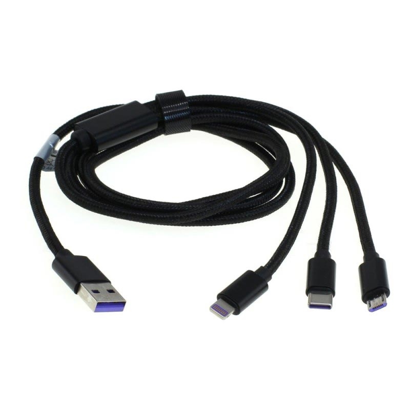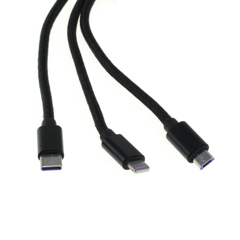 OTB 3-in-1-Ladekabel - Lightning, USB-C, MicroUSB - 1m - Schwarz