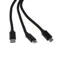 - 3in1-Kabel mit Lightning-Anschluss, Micro-USB-Anschluss und USB Typ C-Stecker