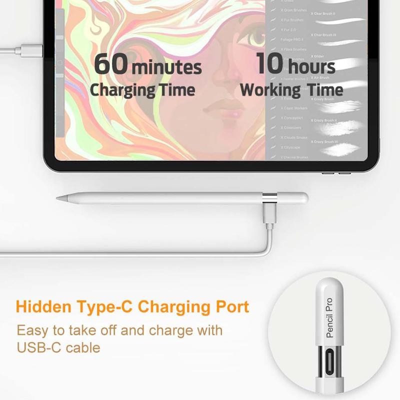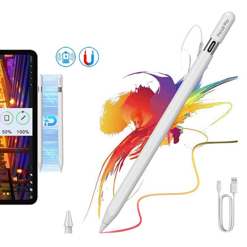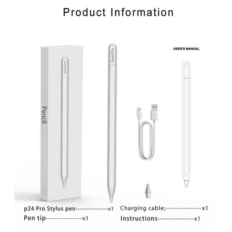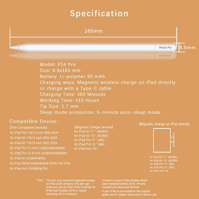 • P24 Pro Magnetisch aufladbarer Stift für iPad - Kabelloser Stift mit austauschbarer 1,7-mm-Spitze, 10-Stunden-Akku, Typ-C-Backup-Kabel