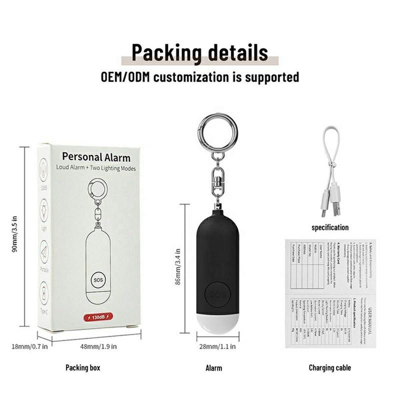 PA100 130dB Wiederaufladbarer persönlicher Sicherheitsalarm mit LED - Weiß