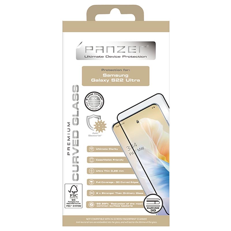 • Panzer Premium Curved Panzerglas für Samsung Galaxy S22 Ultra 5G