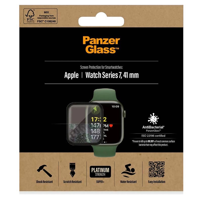 PanzerGlass AntiBacterial Displayschutzfolie aus gehärtetem Glas für Apple Watch Series 9, Apple Watch Series 8, Apple Watch Series 7