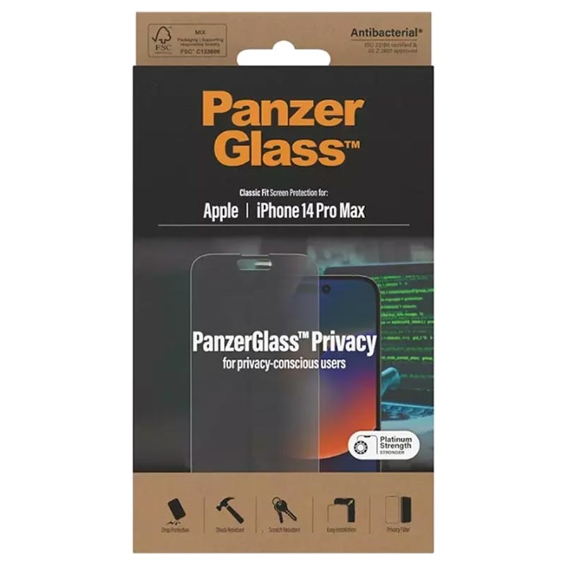 • PanzerGlass Classic Fit Privacy AntiBacterial Panzerglas für iPhone 14 Pro Max
