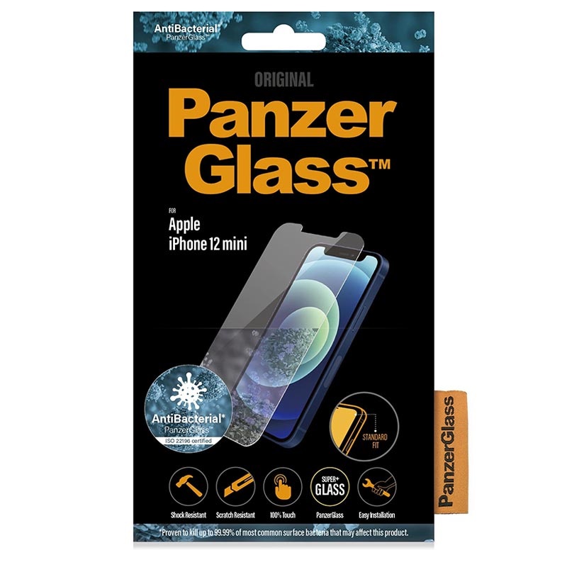Schützen Sie das Display Ihres iPhone 12 Mini mit der PanzerGlass Displayschutzfolie.