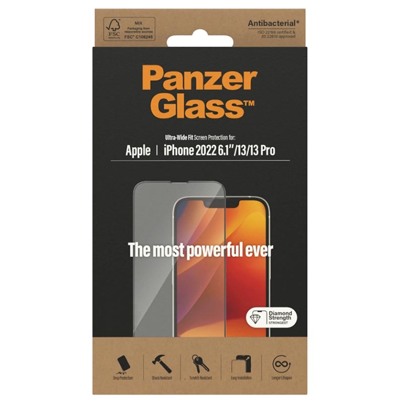 PanzerGlass Ultra-Wide Fit AntiBacterial Panzerglas für iPhone 13, iPhone 13 Pro, iPhone 14