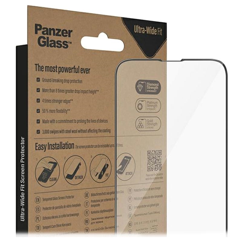 Geben Sie dem Display Ihres iPhone 13, iPhone 13 Pro, iPhone 14 ultimativen Schutz mit der PanzerGlass Ultra-Wide Fit Displayschutzfolie.