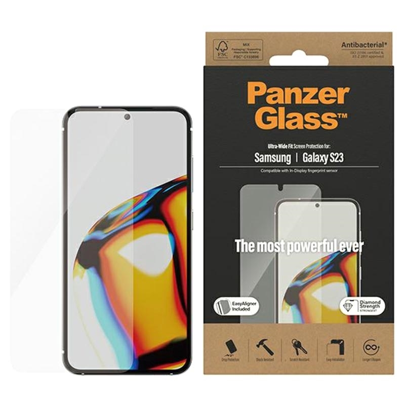 • PanzerGlass Ultra-Wide Fit AntiBacterial Panzerglas für Samsung Galaxy S23 5G